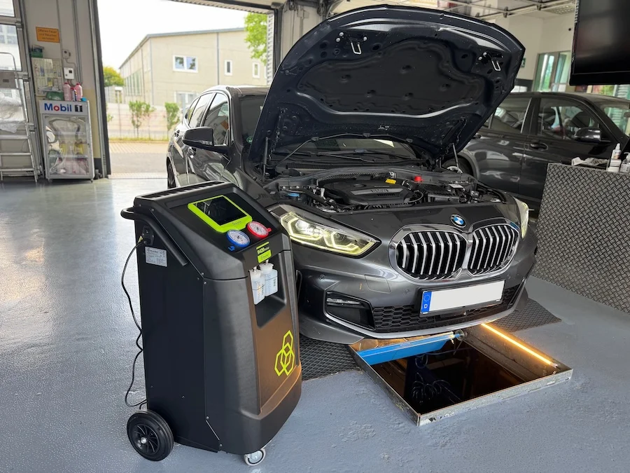 Das Kältemittel wird vollständig ausgetauscht und neu befüllt, außerdem wird die Anlage auf Dichtigkeit geprüft.